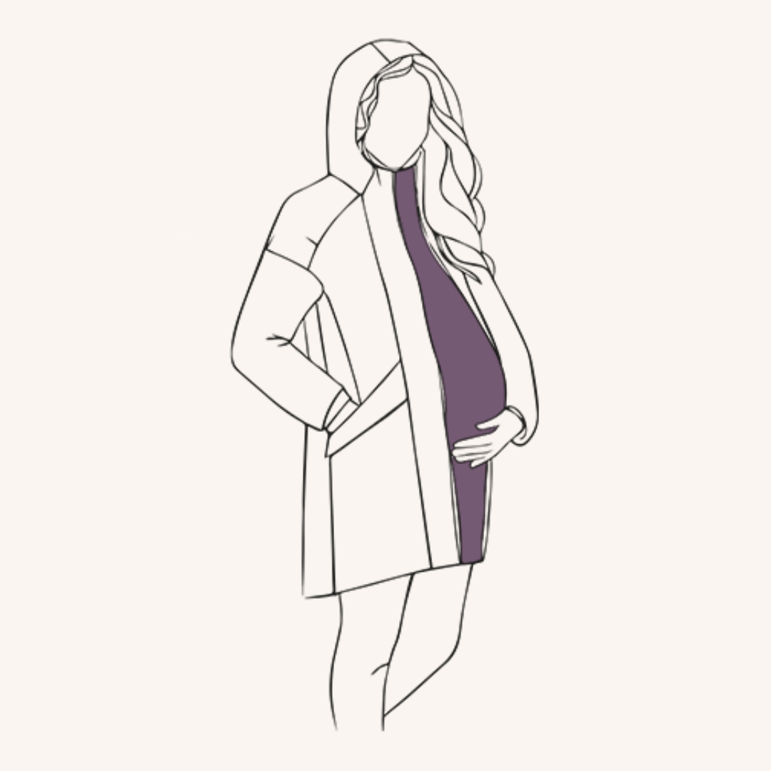 Prends ta taille habituelle : nos manteaux de grossesse sont pensés pour s’adapter à ton ventre rond. En général, on en a besoin à partir du 7ᵉ mois, quand le manteau habituel ne ferme plus.