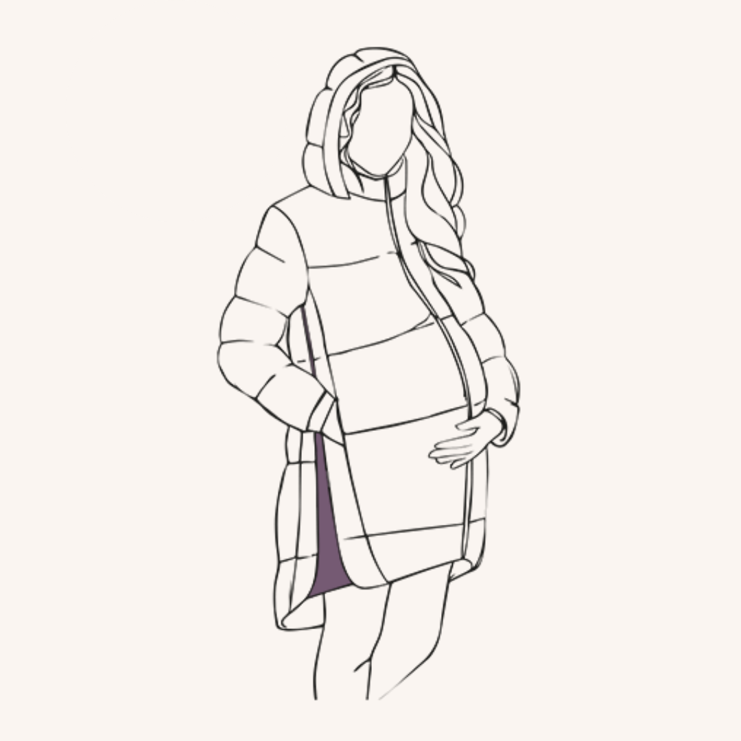 Selon le modèle, il laisse de la place pour ton ventre soit grâce à une coupe évasée, soit avec des panneaux latéraux zippés, soit avec un insert qui se zippe à l’avant du manteau.