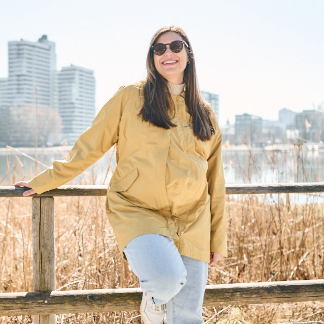 Comme toi et bébé vous vous réchaufferez ensuite mutuellement après la naissance, il te suffira d'ajouter un pull supplémentaire en dessous en hiver pour profiter de ton manteau pendant toute la saison froide.