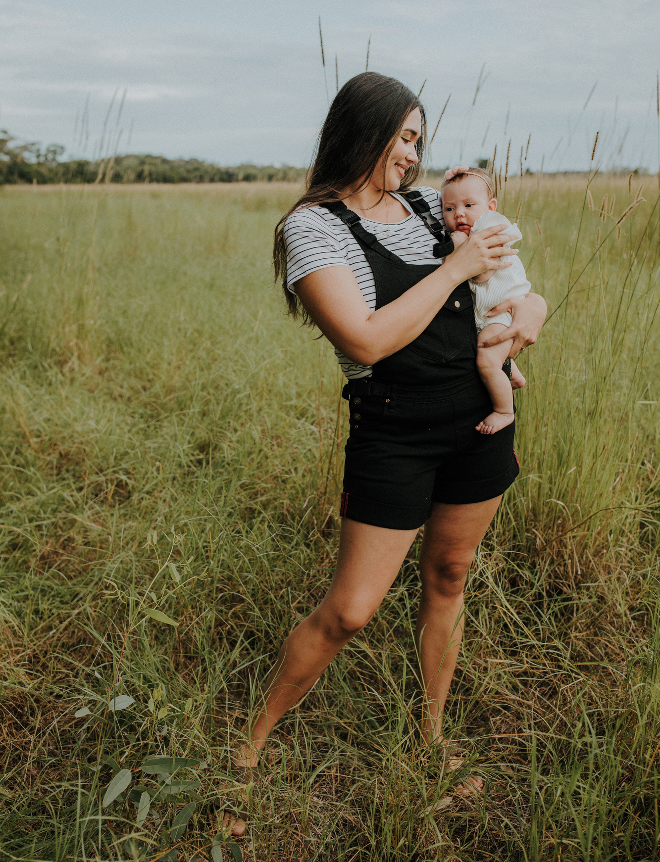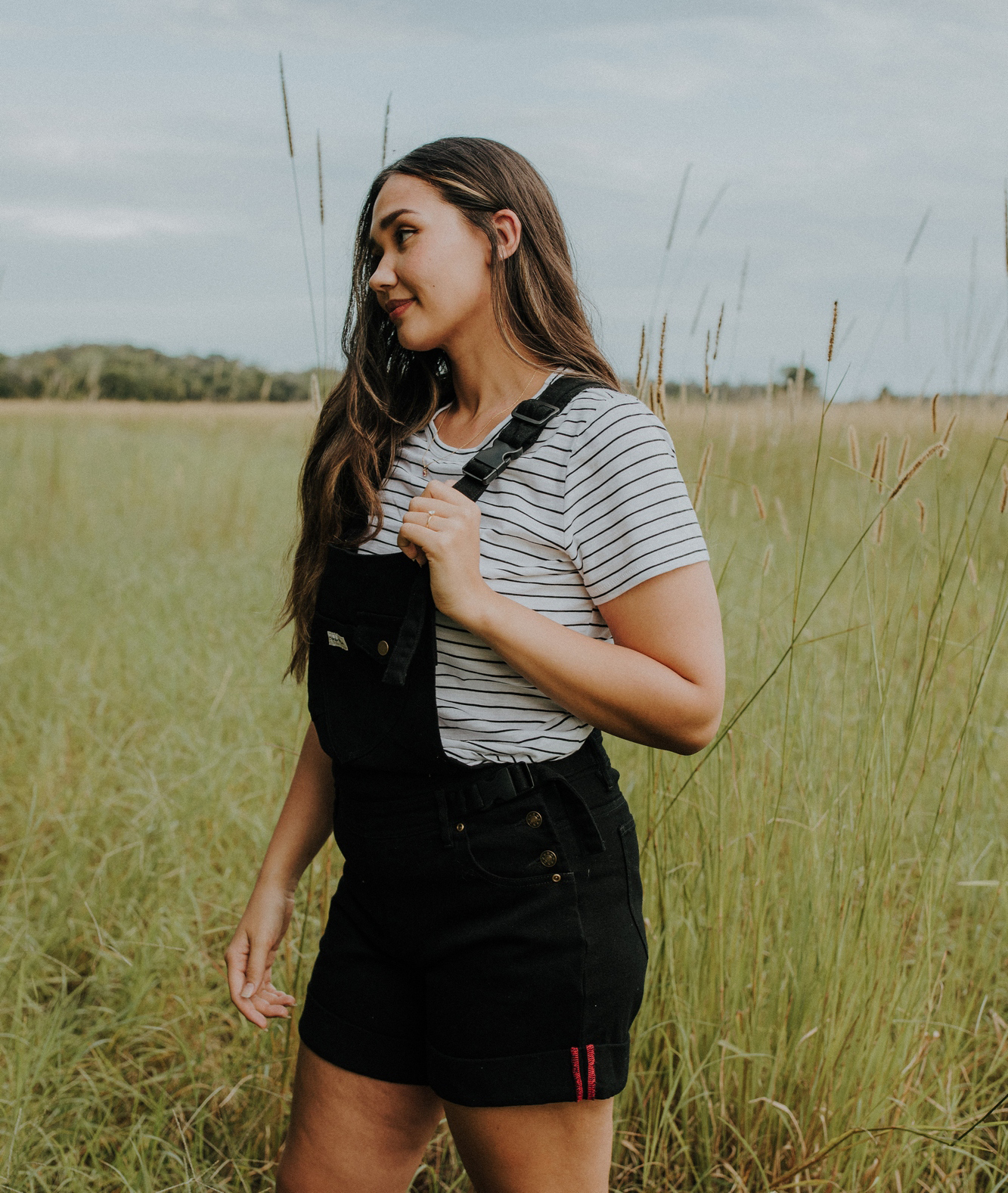 La Mumsie Jet Shortie est idéale pour le baby bump ou le portage en été. Si bébé veut être porté, il suffit de le placer dans la partie supérieure de la salopette pour quelques câlins, tout en gardant les deux mains libres.