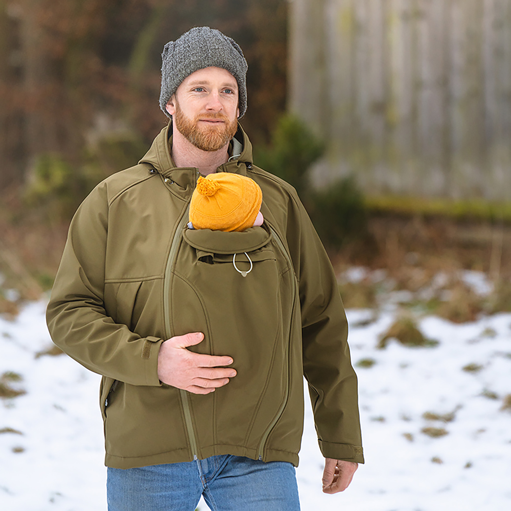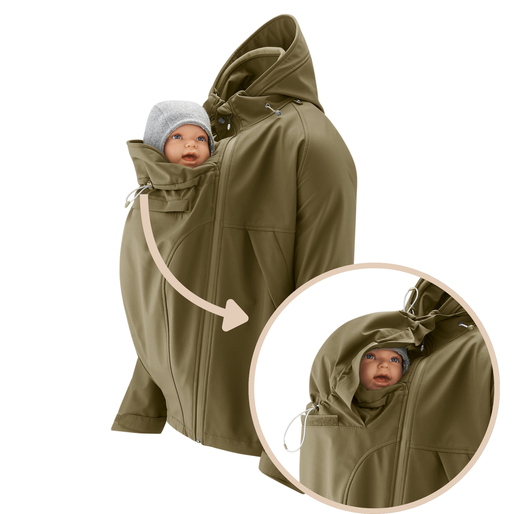 Ob du dein Kind vor dem Bauch oder auf dem Rücken trägst oder einfach nur für dich allein unterwegs bist – diese Softshelljacke macht alles mit. Ein verdeckter Reißverschluss am Rücken fügt sich nahtlos in den Style der Jacke ein, sodass wenn du allein unterwegs bist niemand ahnt, dass es sich um eine Tragejacke handelt – einfach eine vielseitige, lässige Jacke, die du immer wieder gerne tragen wirst.