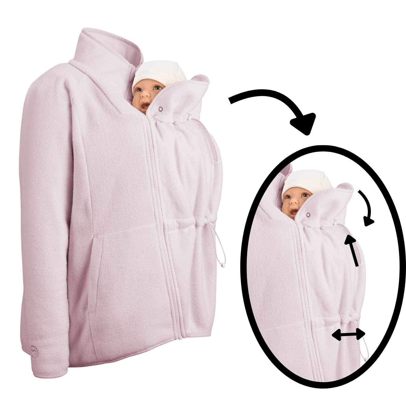 Nous avons imaginé une veste qui procure à bébé ce qu’il connaît le mieux : chaleur, protection et proximité. Qu’il soit paisiblement endormi ou en train de découvrir le monde dans tes bras, il reste bien au chaud, protégé et rassuré dans ce petit cocon douillet en polaire chaude et douce.